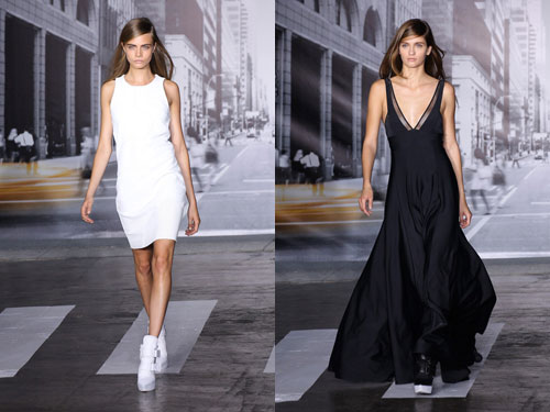 Как дизайнер интерпретирует свою коллекцию? «Отражение Нью-Йорка. Кто такой житель Нью-Йорка? Это тот, кто готов ко всему. От дня к ночи, от уличного до шикарного, она любит противоречия, это определяет ее стиль. Просто дайте ей элементы и она найдет им применение. Для нее, мода – это личная и бесконечная возможность выражения. Как и ее город».