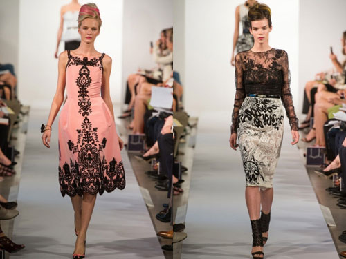 Мода весна-лето 2026 от Oscar de la Renta была заполнена приталенными костюмами и дневными платьями с кружевными вставками, выполненными в черных, красных и желтых тонах. Женщина от Oscar de la Renta стала смелой и уверенной в себе, и не боится выйти на люди в интересных и неожиданных комбинациях, с сексуальными разрезами, латексом и кружевом. В линии представлены юбки-карандаши, топы, шорты и множество коктейльных платьев.